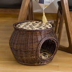 Joli Panier Igloo en Osier pour Chat de fabrication artisanale. Son osier de qualité supérieure résiste aux morsures et griffures de votre animal. Un petit matelas est fourni pour apporter tout le confort nécessaire au sommeil de votre petit félin.